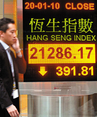 中新網(wǎng)1月21日電 據(jù)香港《文匯報(bào)》報(bào)道,恒指20日收報(bào)21286點(diǎn),跌391.8點(diǎn),成交752億元。A股同樣下跌,上證跌95點(diǎn)報(bào)3151.8點(diǎn),跌幅近3%。國指則跌2.5%,報(bào)12,282點(diǎn),勁跌318.6點(diǎn)。