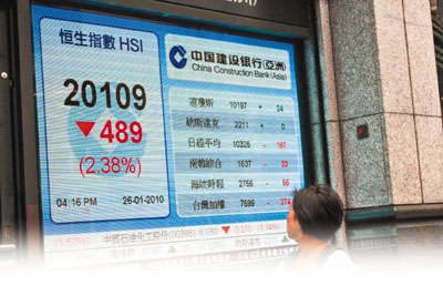 中新網(wǎng)1月27日電 據(jù)香港《文匯報(bào)》報(bào)道,期指結(jié)算臨近,港股沽壓持續(xù),恒指連跌5個(gè)交易日,累積跌1568點(diǎn),險(xiǎn)守20000點(diǎn)關(guān)口。26日適逢多個(gè)壞消息出籠,亞太區(qū)股市近全線下挫,港股由開市跌至收市,全無反撲之力,恒指最多跌逾550點(diǎn),收跌489點(diǎn)或2.4%,跌至20109點(diǎn),成交777億元。