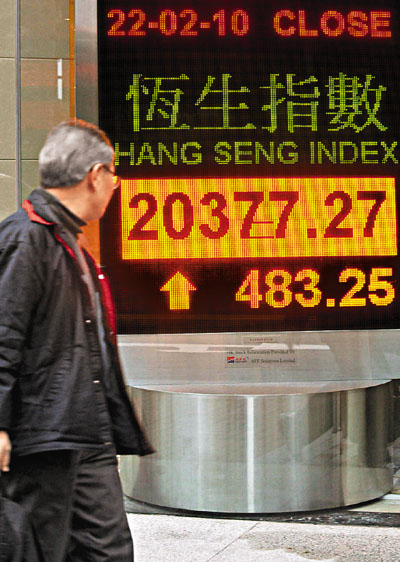 中新網2月23日電 據香港《文匯報》報道,內地股市長假期后重開,A股走勢偏軟,滬深兩市均未能收紅盤。由于香港上周五已經大跌,加上下午賣地成績理想,令恒指22日擺脫A股的羈絆,大市在匯控、中移動及一眾地產股上升帶動下,重上20000點水平。