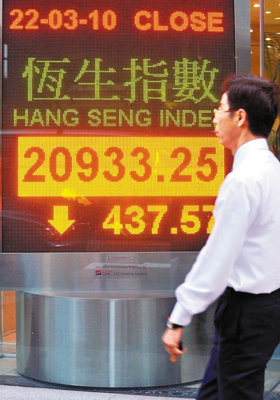 中新網(wǎng)3月23日電 據(jù)香港《文匯報》報道,希臘債務危機的負面消息仍籠罩全球股市,加上印度突然加息0.25厘,投資者憂慮其它新興市場特別是中國可能也會跟隨加息,令亞太區(qū)股市報跌,港股更是區(qū)內(nèi)表現(xiàn)最差的股市。