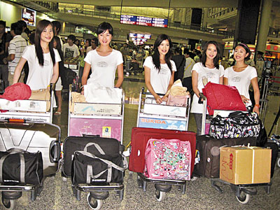 中新網(wǎng)7月3日電 據(jù)香港《文匯報》報道,應屆香港小姐的北海道外景之旅順利完成,大隊返港,一眾佳麗及嘉賓胡杏兒和陳倩揚把握上機前的小小時間買禮物,10號李姿敏的媽咪原來參加了港姐北海道旅行團,與愛女一起回港。