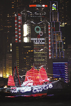 中新網(wǎng)12月2日電 據(jù)香港《文匯報(bào)》報(bào)道,耗資4000萬(wàn)元制作的香港東亞運(yùn)動(dòng)會(huì)開(kāi)幕禮將于本周六舉行,維港將會(huì)化身水中舞臺(tái),除會(huì)舉行典禮儀式及文藝表演,還會(huì)上演花船巡游和歷時(shí)15分鐘的煙花匯演。
