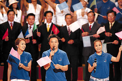 胡偉民也透露,歷時(shí)2小時(shí)的閉幕典禮,內(nèi)容精彩豐富,來(lái)自5個(gè)國(guó)家或地區(qū)的流行歌手,包括韓國(guó)的蔡妍、日本的中孝介、臺(tái)灣的任賢齊、內(nèi)地的朱哲琴及香港的陳奕迅,除獻(xiàn)唱自己的首本名曲,更會(huì)透過(guò)美妙歌曲,配合舞蹈員的動(dòng)人舞姿,唱出每個(gè)觸動(dòng)人心的東亞運(yùn)故事,包括運(yùn)動(dòng)員由訓(xùn)練至奪取獎(jiǎng)牌的經(jīng)過(guò)、及義工參與東亞運(yùn)過(guò)程及所作出的貢獻(xiàn)。