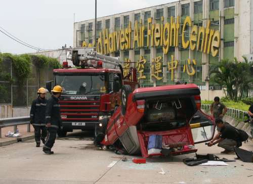 中新網(wǎng)6月22日電 據(jù)香港《大公報(bào)》報(bào)道,香港九龍城21日上午發(fā)生出租車翻車意外,肇事司機(jī)駛至宋王臺(tái)時(shí),報(bào)稱閃避流浪狗而失控撞向路旁石壆,反彈出路面時(shí)四輪朝天。