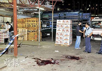 事發(fā)在22日晚約10時(shí),2名男子與一批人在果欄談判,其后起爭(zhēng)執(zhí),2名男子被多人持刀追砍,身受重傷,其中1人其后死亡,另1人左手手腕和左腰有刀傷,敷藥后已經(jīng)出院。