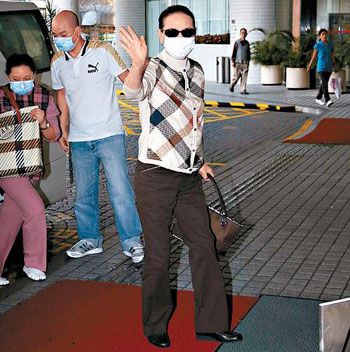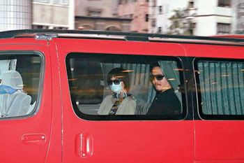 超儀與丈夫乘車離開醫(yī)院。(圖片來源:星島日?qǐng)?bào))