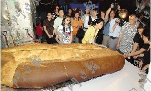 中新網(wǎng)5月22日電 《澳門日報(bào)》今日在頭條刊發(fā)報(bào)道稱,由澳門金馬輪咖啡餅店焗制的巨型豬扒包于21日舉行的“愛在澳門——第二屆世紀(jì)婚禮兩岸四地2009”活動(dòng)開幕儀式中亮相,將申請成為吉尼斯世界紀(jì)錄大全中的全球最大的豬扒包。21日不少與會(huì)者均對巨型豬扒包十分感興趣,紛紛與包合照,場面熱鬧。