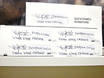龔家證人上周作供完畢,法庭15日開始傳召專家證人作供。華懋慈善基金傳召的英國筆跡專家Robert Radley,分析王永祥提供的35個簽名樣本,其中20個是王永祥特意為案件而簽,其余15個則是他于1995年至2007年文件中的簽名。Robert Radley將簽名樣本跟“06遺囑”中的簽名比較,發(fā)現(xiàn)有10多個不同處,他15日在法庭內(nèi)利用顯微鏡及投射機,將不同處逐個投射到大熒幕解釋。