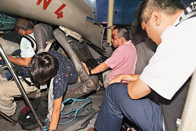 大批消防員接報到場,立即拖喉救火,同時進(jìn)入車廂,先將倒臥地板的傷者救出,再以電剪拆除移位的座椅,拯救被困傷者,經(jīng)近半小時努力,先后將面部熏黑、頭發(fā)燒焦的昏迷司機(jī)及16名男女乘客救出,由10輛救護(hù)車分頭急送屯門醫(yī)院、北區(qū)醫(yī)院及博愛醫(yī)院。