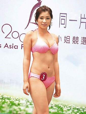 10號(hào)王晨明顯穿小一個(gè)碼的泳裝,上圍有逼爆之感,不過(guò)她澄清本來(lái)度身時(shí)大會(huì)安排她穿中碼,14日到場(chǎng)后試穿感覺(jué)不稱身應(yīng)改穿大碼。