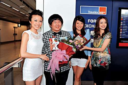 中新網(wǎng)5月6日電 憑《I Will Always Love You》一曲在國(guó)際爆紅,有“臺(tái)版蘇珊大嬸”之稱的小胖林育群,5日由臺(tái)灣來(lái)港展開五天宣傳之旅,無(wú)線特地派出應(yīng)屆三位港姐劉倩婷、熊穎詩(shī)及李姿敏到機(jī)場(chǎng)獻(xiàn)花給他,令小胖高興得一直在冒汗。對(duì)于外形備受批評(píng),但小胖坦言發(fā)型、肚腩及領(lǐng)結(jié)都是他的標(biāo)志,所以無(wú)意減肥或整容,倒希望眼睛可以大一點(diǎn),因眼睛小戴隱形眼鏡有難度。