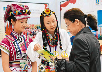 中新網(wǎng)4月12日電 據(jù)香港《文匯報(bào)》報(bào)道,11日,包括北京、上海、廣州、長(zhǎng)春、鄭州、西安等在內(nèi)的全國(guó)186個(gè)重點(diǎn)旅游城市同步啟動(dòng)“全國(guó)百城旅游宣傳周”活動(dòng)。近百名港澳游客接受北京旅游局、商務(wù)局贈(zèng)送的《消費(fèi)伴旅》,憑此手冊(cè)港澳游客可在王府井、西單、前門(mén)享受折上折購(gòu)物優(yōu)惠。