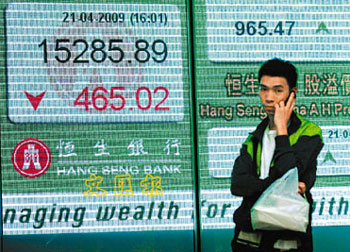 中新網(wǎng)4月22日電 據(jù)香港《文匯報(bào)》報(bào)道,美股大跌近300點(diǎn),令港股21日裂口低開(kāi)685點(diǎn),是近期少見(jiàn)的大調(diào)整,匯控等一眾金融股成為跌市火車頭。下午港股跌幅收窄,全日收?qǐng)?bào)15285點(diǎn),跌465點(diǎn),跌幅3%,為兩周來(lái)最大跌幅,成交縮至576.8億。