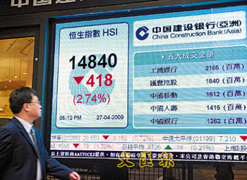 中新網(wǎng)4月28日電 據(jù)香港《文匯報》報道,雖然上周五美股上升,但在豬流感疫情擴散的影響下,港股27日低開98點后,加上工行外資股東限售股28日解禁,令內(nèi)銀股受壓,恒指隨后失守15000點,收報14840點,跌418點或2.74%,國企指數(shù)跌337點,報8641點,大市成交530億元。