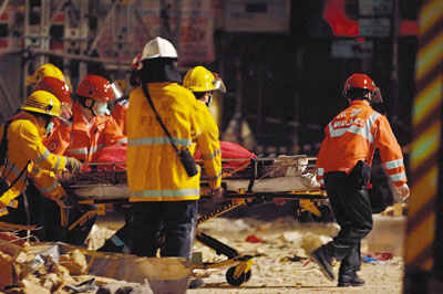 紅磡馬頭圍道舊樓倒塌意外發(fā)生后,消防人員展開逾二十小時(shí)的搜救行動(dòng)昨晨結(jié)束,證實(shí)事件釀成四死二傷。為防止慘劇重演,香港發(fā)展局旋即成立四十支專業(yè)隊(duì)伍,明日起巡查全港四千幢逾五十年樓齡的樓宇結(jié)構(gòu)安全,將于一個(gè)月內(nèi)完成巡查,并對(duì)有實(shí)時(shí)危險(xiǎn)的樓宇進(jìn)行緊急維修及鞏固工程。發(fā)展局局長林鄭月娥表示,港府會(huì)從檢查樓宇結(jié)構(gòu)、取樣化驗(yàn)及向目擊者索取資料等方向,追查塌樓原因,并研究加快推展驗(yàn)樓及驗(yàn)窗的立法工作。