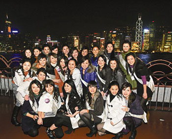 來(lái)自各國(guó)的佳麗難得同游維港,此情此景,當(dāng)然要來(lái)張“合家歡”。(圖片來(lái)源:文匯報(bào))