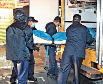 仵工到場將仁愛樓倒斃女子尸體搬走。