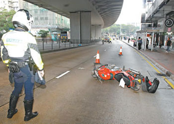由于撞擊力甚猛,學(xué)童如斷線紙鳶般“彈”前數(shù)米才著地昏迷,頭手腳均受傷。肇事電單車則失控,沖前10多米后司機倒地受傷,但電單車余勢未了,在路面不斷打轉(zhuǎn),再沖前20多米才停下。幸好意外發(fā)生時該路段非繁忙時間,沒有車輛尾隨駛至,否則兩人可能會再被撞及或輾過。有路人目擊經(jīng)過大驚,實時報案求助。