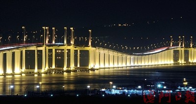 中新網(wǎng)3月16日電 據(jù)澳門日報報道,澳門三條跨海大橋照明系統(tǒng)去年底在臺風中受損及被“水老鼠”偷竊,有關單位耗資1800多萬元進行大規(guī)模維修。有關工程已全部完成,入夜后澳氹間海面再現(xiàn)“長虹”。