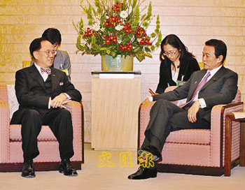 2月16日,香港特別行政區(qū)行政長(zhǎng)官曾蔭權(quán)開始對(duì)日本的正式訪問(wèn)。這是他就任特首以來(lái)首次訪日,受到日本政經(jīng)各界的歡迎。圖為16日傍晚,曾蔭權(quán)在東京與日本外相中曾根弘文舉行會(huì)談。 中新社發(fā) 朱沿華 攝