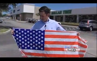 達(dá)拉斯地區(qū)當(dāng)?shù)仉娨暸_WFAA報道稱,一名名叫柴德瑞斯(Tim Childress)的消費者日前到一元商店“Dollar Tree”達(dá)拉斯地區(qū)一家分店購買塑料材質(zhì)的大幅美國國旗,回家才發(fā)現(xiàn)這幅美國國旗上面竟然有61顆星星,比標(biāo)準(zhǔn)版美國國旗多出11顆。
