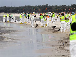 颶風(fēng)引發(fā)1.8米的大浪,風(fēng)速達(dá)到每小時25公里。大浪卷著石油和原油塊侵蝕著美國路易斯安那州、阿拉巴馬州和佛羅里達(dá)州的海灘。路易斯安那州的海灘清潔員稱,大片石油被不斷地沖向沙灘,黑乎乎的原油塊猶如蘋果一般大。