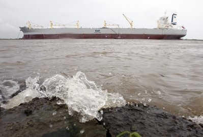 輪船已于今天抵達(dá)美國(guó)路易斯安那州的海域,先進(jìn)行試用。在得到海岸警衛(wèi)隊(duì)的認(rèn)可后,這艘世界最大的浮油回收船將駛?cè)肽鞲鐬陈┯偷攸c(diǎn)。