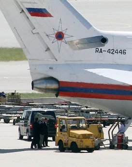 現(xiàn)場(chǎng)記者指出,該架客機(jī)停放在一架編號(hào)為RA42446的俄羅斯客機(jī)旁邊,兩架客機(jī)靠得很近,記者無(wú)法看見(jiàn)客機(jī)艙門(mén)的情況。