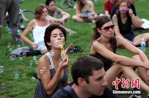 中新社多倫多7月17日電 (記者 賴(lài)海隆)數(shù)百名攜帶吹氣泡用品的抗議者17日正午時(shí)分在多倫多皇后公園里同時(shí)吹出氣泡,以表達(dá)對(duì)“氣泡警官”喬瑟夫斯憤怒,以及對(duì)G20峰會(huì)期間警方行為的公眾調(diào)查的支持。