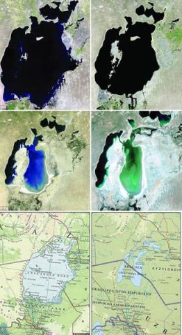位于烏茲別克斯坦和哈薩克斯坦之間的咸海,曾是世界第四大內(nèi)陸湖,里面生活著至少20種魚類。20世紀(jì)60年代初期,前蘇聯(lián)政府建造了45座堤壩和30000多公里長的河渠,支持在烏茲別克斯坦沙漠平原建造棉花工業(yè)區(qū)。在隨后三十年間,咸海縮小了五分之二,周圍的漁村也都變成沙漠荒地。由于水中含鹽量過高,魚類全部滅絕。當(dāng)?shù)仫嬘盟⿷?yīng)陷入危險(xiǎn)水平,棉花田使用的殺蟲劑也滲入地下水中。每年高達(dá)7500萬噸的有毒浮沉和鹽末被吹到中亞各地。由于哈薩克斯坦建造堤壩,咸海北部已經(jīng)開始恢復(fù),但南部依然處于環(huán)境惡化之中。