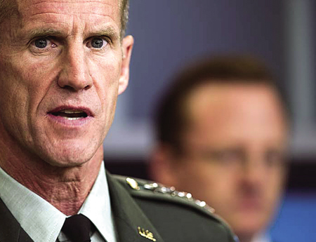麥克里斯特爾6月接受美國《滾石》雜志采訪時質(zhì)疑貝拉克·奧巴馬上臺后推行的阿富汗戰(zhàn)略,直接批評副總統(tǒng)約瑟夫·拜登和美國駐阿大使卡爾·艾肯伯里等政府高官,隨后遭到解職。