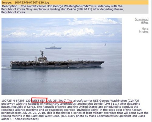 記者于7月28日再次登錄美國海軍官方網(wǎng)站,發(fā)現(xiàn)之前被標為拍攝于“西!(中國稱“黃!)并在7月27日被刪除的照片,已經(jīng)再度被上傳到網(wǎng)站上,而其標注的地點已經(jīng)被更正為“日本!薄