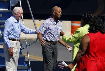 卡特25日抵達(dá)平壤,并與朝鮮最高人民會(huì)議常任委員會(huì)委員長(zhǎng)金永南進(jìn)行了交談。美國(guó)官員稱,卡特此次訪朝是一次“私人性質(zhì)的人道主義式訪問(wèn)”,只是為了幫助戈麥斯獲釋。