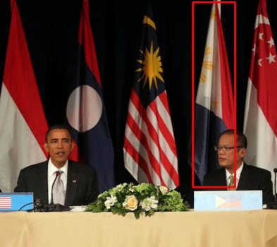 中新網(wǎng)9月27日電 據(jù)外電報道,24日,美國總統(tǒng)奧巴馬在紐約同東盟國家領(lǐng)導人舉行會晤,當時放置在菲律賓總統(tǒng)阿基諾三世身后的菲律賓國旗被錯誤地倒掛。菲律賓如果倒掛國旗,意味著進入戰(zhàn)爭狀態(tài)。美國政府26日就此表示道歉。