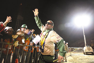 中新網(wǎng)10月14日電 綜合媒體報道,史上最長的礦井救援行動14日迎來最終勝利,智利救援人員用特制救生艙,把33名被困在近700米深地底達69日的礦工逐個運回地面。智利總統(tǒng)表示,這次艱巨救人行動對礦工與智利都是“真正的重生”。被救礦工心情各異,有人想第一時間知道自己變成什么模樣,也有人擔心逃生井在救援過程中坍塌。