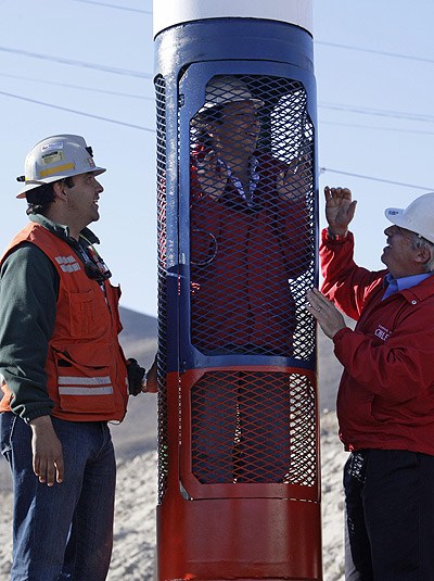 皮涅拉說(shuō),智利此次向世界做出了很好的示范,闡明了“承諾、勇氣、信心、希望和團(tuán)結(jié)的真諦”。他在會(huì)見(jiàn)英國(guó)女王伊麗莎白二世和首相卡梅倫時(shí),將礦工從地底下帶上來(lái)的礦石當(dāng)做禮物贈(zèng)送。