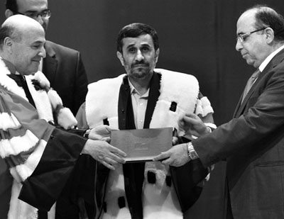 14日上午,內(nèi)賈德在位于貝魯特的黎巴嫩大學(xué)受到了師生們的熱烈歡迎,并被授予政治學(xué)榮譽(yù)博士學(xué)位。黎教育部長和黎巴嫩大學(xué)校長為他披上博士服并頒發(fā)了學(xué)位證書。獲得博士學(xué)位的內(nèi)賈德激動不已,當(dāng)場向?qū)W生們發(fā)表講話。他說:“我們相信真正的科學(xué)會為人類、和平、愛和友誼服務(wù)!
