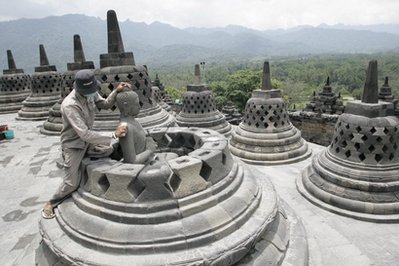 建造于9世紀(jì)的婆羅浮屠佛塔群屬于大乘佛教建筑,佛塔下沉、隱蓋于茂密的熱帶叢林中近千年,直到19世紀(jì)初才被清理出來(lái)。它與中國(guó)的長(zhǎng)城、埃及的金字塔和柬埔寨的吳哥窟并稱為古代東方四大奇跡。20世紀(jì)70年代,聯(lián)合國(guó)教科文組織將婆羅浮屠列入世界文化遺產(chǎn)。