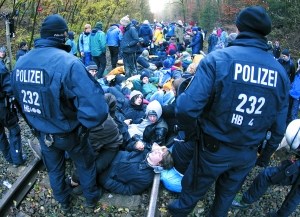 德國警方8日說,警方驅(qū)散大約3000名阻礙核廢料運載列車前進的抗議者,列車得以再次啟動,即將抵達目的地。