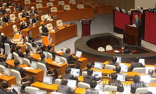 中新網(wǎng)11月25日電 據(jù)韓聯(lián)社報(bào)道,韓國(guó)國(guó)會(huì)25日下午舉行全體會(huì)議,表決通過(guò)了《關(guān)于譴責(zé)朝鮮武力挑釁的決議案》。在271名參加投票的議員中,261人投贊成票,1人投反對(duì)票,9人棄權(quán)。