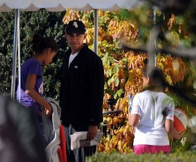 中新網(wǎng)11月29日電 據(jù)外電報(bào)道,當(dāng)?shù)貢r(shí)間28日,不久前遭肘擊、嘴唇因此縫了12針的美國(guó)總統(tǒng)奧巴馬又重回籃球場(chǎng)打球,不過(guò),這次他和兩個(gè)個(gè)子小了許多的對(duì)手——他的兩個(gè)女兒上場(chǎng)。相信這次,他不會(huì)再“破相”了。