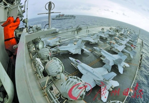 11月28日~12月1日,韓美聯(lián)合軍演。美國和韓國分別派出“華盛頓”號航空母艦(9.7萬噸)和“世宗大王”號宙斯盾艦等10多艘艦艇,在西海進行每天24小時演習。進行了包括海上自由攻防戰(zhàn)、對空防御訓練、海上射擊等空前規(guī)模的演練。
