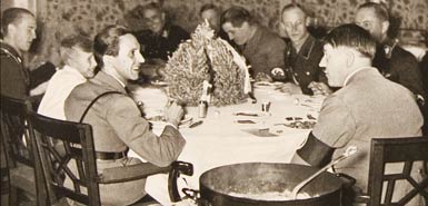 這份文件還記錄稱,更加令人感到驚奇的是,在進(jìn)餐時的談話中,希特勒的語氣并不像他在公共場合演講時那樣略帶沙啞的“歇斯底里”,而是用“標(biāo)準(zhǔn)的男中音”。對于女性,希特勒總會表現(xiàn)出一種極其自然的殷勤與真誠。他那帶有“古老奧地利”口音的殷勤和文雅,給他的言行舉止增添了一種不可抗拒的魅力。他對在他手下工作的女性總是十分尊重,而且沒有任何偏見。當(dāng)然他也要求手下的工作人員專心致志并且徹底犧牲個人的自由。希特勒在追求女性方面是一個極其糟糕的心理學(xué)家,因為他本身就是一個完美的喜劇演員,很難分辨哪是本性哪是偽裝。所有接近他的人,尤其是女人總是把自己最美的一面展示出來,而希特勒對她們表現(xiàn)出來的殷勤和虛偽總是信以為真。他明顯偏愛他的一名女秘書,這位秘書非常懂得滿足他的虛榮心。她在場的時候,希特勒總是會露出愉快的笑容,