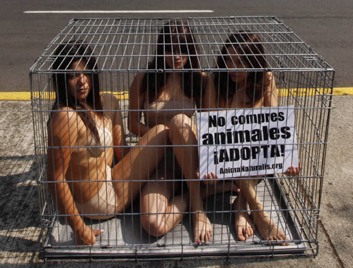 中新網(wǎng)1月4日電 綜合報(bào)道,1月3日,墨西哥城3名動(dòng)物權(quán)益組織成員坐在一個(gè)籠子中,對(duì)買賣寵物的行為表示抗議。他們希望以這種形式喚起人們的注意,呼吁人們不要販賣寵物。