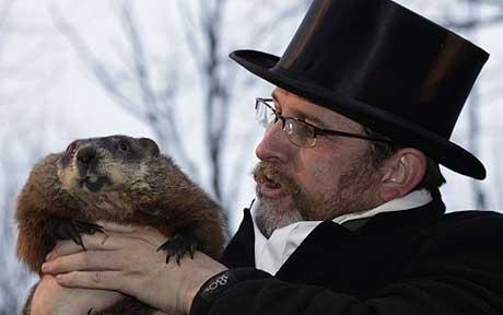今年的2月2日,13000名觀眾聚在在賓夕法尼亞州的小鎮(zhèn)旁蘇托尼(Punxsutawney)觀察一只名叫“菲爾”的土拔鼠的行為!胺茽枴笔枪俜街付ǖ耐涟问髿庀箢A(yù)測員,2月2日早晨,“菲爾”被工作人員弄出洞,面對眾人和媒體,尋找自己的影子,然后將預(yù)測結(jié)果告訴鎮(zhèn)上帶高帽的老人比爾·庫柏,再由他向大家宣布預(yù)測結(jié)果。據(jù)說,庫柏是世界上唯一一個懂土拔鼠語言的人。這一天天氣晴好,土拔鼠“菲爾”看到了自己的影子,那么預(yù)示著美國的冬天還要持續(xù)6個星期。根據(jù)旁蘇托尼土拔鼠俱樂部的記載,自1887年起,菲爾看到過自己的影子達97次,沒看到的有15次,有9年沒有記錄。這個小鎮(zhèn)今年吸引了來自日本、冰島和埃及的游客,小鎮(zhèn)聲稱菲爾的預(yù)測從來就沒有失誤過。