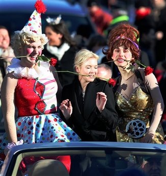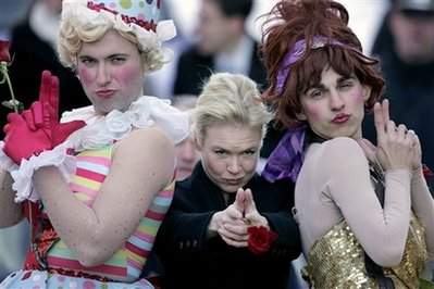中新網(wǎng)2月6日電 據(jù)美聯(lián)社報道,5日哈佛大學的速食布丁劇團將速食布丁年度女性大獎授予女星蕾妮•齊薇格。蕾妮•齊薇格按照以往慣例,帶領(lǐng)一群男扮女裝的學生們在哈佛校園中進行一場盛大游行。