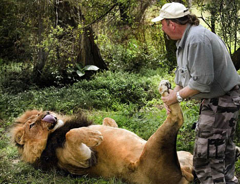 中新網(wǎng)2月19日電 獅子從來都是令人生畏的動物。別說撫摩,就算靠近,估計很多人也不敢。但在南非,有一位來自英國的動物飼養(yǎng)員,不但長年和75頭獅子生活在一起,而且和它們的關(guān)系親密到可以為“百獸之王”按摩腳掌,被稱為“守獅人”。