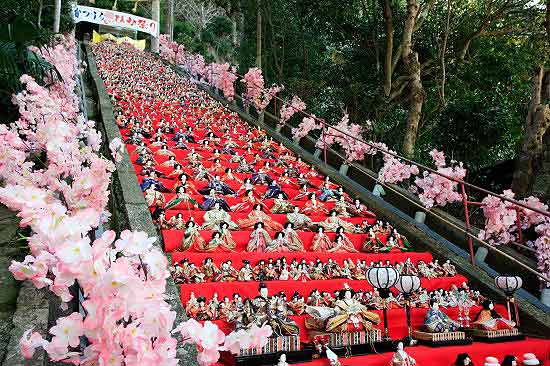 每年的3月3日是日本的傳統(tǒng)節(jié)日女兒節(jié),父母通常會(huì)把人偶裝飾在家門口,祈求女兒健康成長(zhǎng)。勝浦居民從2001年開始,每年2月下旬起舉行盛大的女兒節(jié)人偶展示活動(dòng),女兒節(jié)已成為當(dāng)?shù)芈糜萎a(chǎn)業(yè)的支柱項(xiàng)目。今年有約3萬個(gè)人偶出現(xiàn)在勝浦的大街小巷。(新華社記者 任正來 攝)