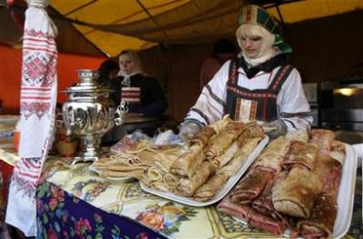 俄羅斯煎餅節(jié)登場 眾人狂歡吃松餅喝蜂蜜酒(圖)