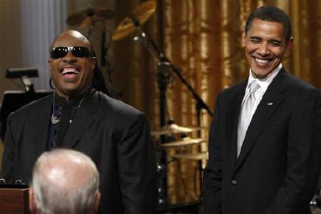 中新網(wǎng)2月26日電 據(jù)路透社報(bào)道,美國(guó)總統(tǒng)奧巴馬夫婦日前在白宮為黑人歌手汪德(Stevie Wonder)舉辦音樂(lè)會(huì)并頒獎(jiǎng),稱(chēng)是汪德的音樂(lè)撮合了他們夫婦。